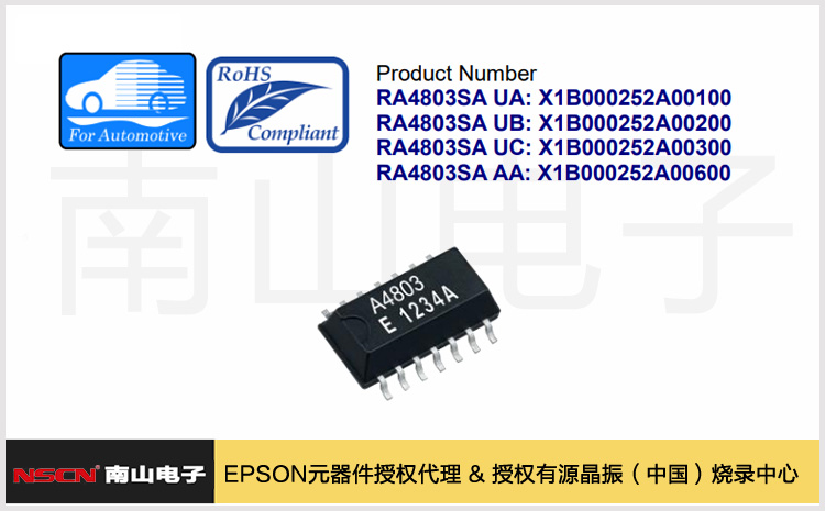 愛(ài)普生推出的一款專門針對(duì)汽車應(yīng)用的一款數(shù)字溫度補(bǔ)償實(shí)時(shí)時(shí)鐘模塊RA4803SA,內(nèi)置32.768kHz的晶振單元,內(nèi)部集成了溫度檢測(cè)電路,通過(guò)檢測(cè)溫度傳感器信號(hào)變化,將模擬量轉(zhuǎn)換為數(shù)字量,自動(dòng)補(bǔ)償頻率輸出,實(shí)現(xiàn)更加精準(zhǔn)的頻率輸出。EPSON針對(duì)不同需求推出了UA、UB、UC和AA4個(gè)子型號(hào),其中RA4803SA UA的頻率容差達(dá)到±3.4×10^-6,這種頻率穩(wěn)定性是汽車電子系統(tǒng)控制電路的剛需,適用于汽車本體涉及各類安全特性的控制部件。南山電子是愛(ài)普生元器件核心授權(quán)代理商,如需咨詢價(jià)格歡迎咨詢南山電子官網(wǎng)...
